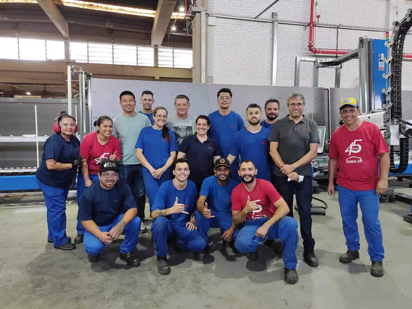 然而,實現(xiàn)這一過程面臨著許多挑戰(zhàn)。要將一條從上料到下料、從清洗到框架組裝、從機器人處理Super Spacer到高速氬氣填充和壓制、高速密封的全自動生產(chǎn)線中的每個組件的周期時間同步化,需進行精密的規(guī)劃。從設(shè)計階段的嚴格計算,到生產(chǎn)、調(diào)試、試運行再到最終驗收,我們遇到了眾多問題。這些問題包括:玻璃上料過程的自動化、為客戶處理不同高度的玻璃架、防止玻璃在無人操作期間粘附、在上料和下料過程中匹配玻璃架的數(shù)量、在滿載情況下加速機械臂的速度以及同步整條生產(chǎn)線的速度。每一個挑戰(zhàn)都是通過韓江團隊與我們在巴西的服務(wù)團隊NEX的日夜協(xié)作而克服的。