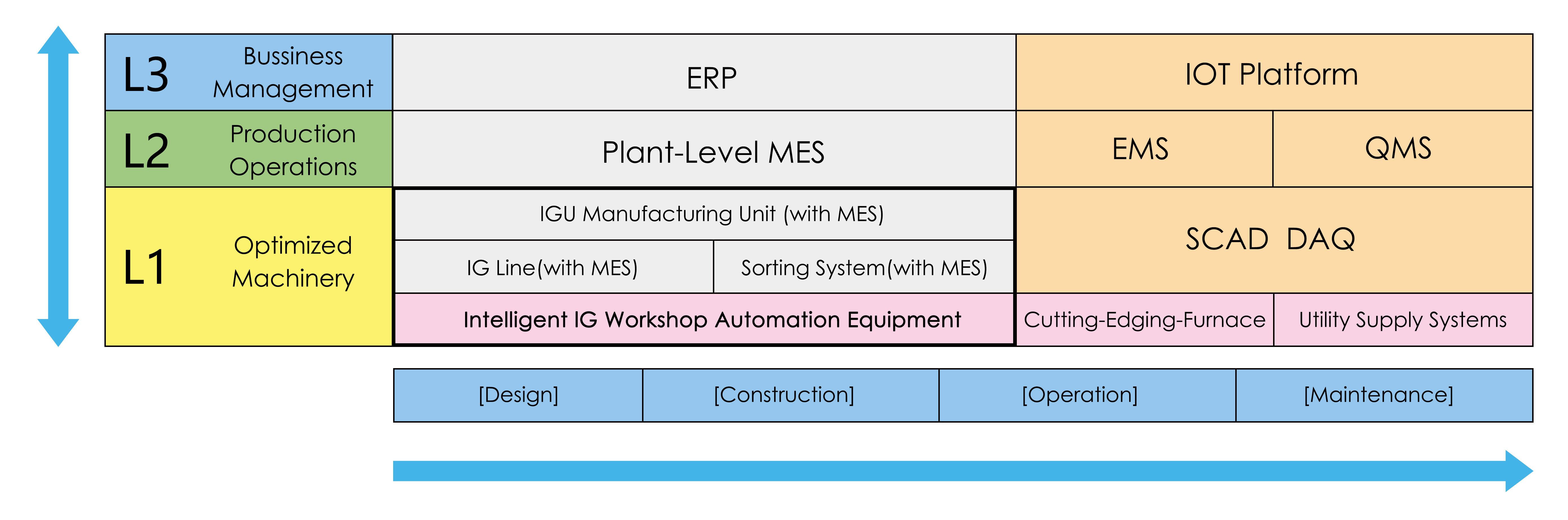 這一中空智能制造單元通過ERP-MES-PLC的訂單數(shù)據(jù)直達(dá)與硬件自動化設(shè)備的無縫聯(lián)動,真正實(shí)現(xiàn)了復(fù)雜、多樣中空訂單的一站式解決方案。